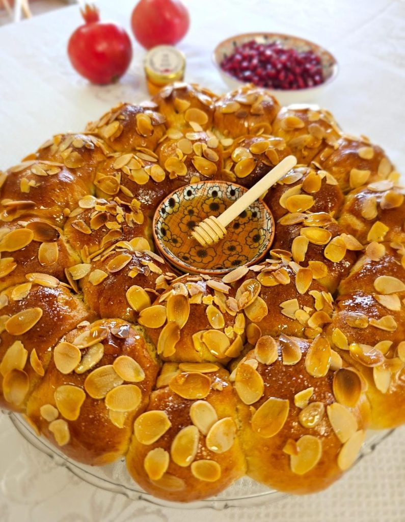בין תפוח לדבש, תנו כבוד גם לחלה – השנה הזו נפתחת באמת בקריעה רכה בידיים, שקדים פריכים ודבש שנוזל כמו ברכה.